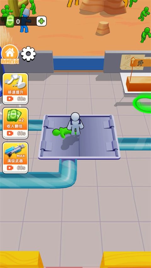 获取大量的金钱之后就可以升级啦,不断升级是游戏的关键,玩家可以使用获得的金钱来提高自己的抓捕能力,升级装备和榨汁机可以让玩家更加高效地抓捕和处理僵尸,同时也能产生更好的果汁。