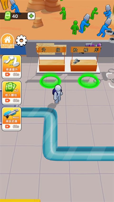 5、可以升级人物的速度、枪 械和力量,等级越高捕捉僵尸也会越来越多;