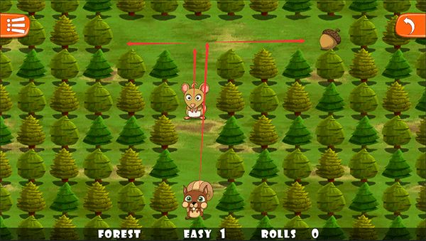 3、滑动手指,让松鼠移动,采用合理的移动顺序,让小松鼠移动到坚果旁即可过关。