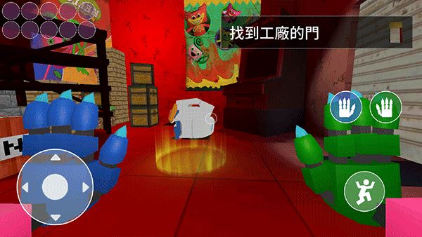 2、这里以玩具工厂为例,游戏的操作非常的简单,左边控制人物移动,右边控制机械手、跳跃;