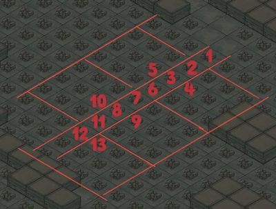3、如图:1区域出了3*3怪,可探索13位置,13位置出了3*3怪,可探索15位置。