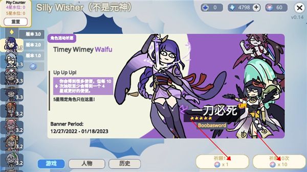 贪婪的旅行者是一款深受原神玩家喜欢的原神卡池抽奖模拟器游戏,该游戏的英文名称为silly wisher,游戏高度还原了原神里的的抽卡机制和动态场景,可以让玩家不受限制地体验抽牌的乐趣,玩法非常的自由。