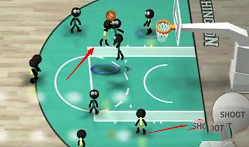 2、在我们进攻时,右边会有一个shoot的按钮,按这个键就是投篮键了。
