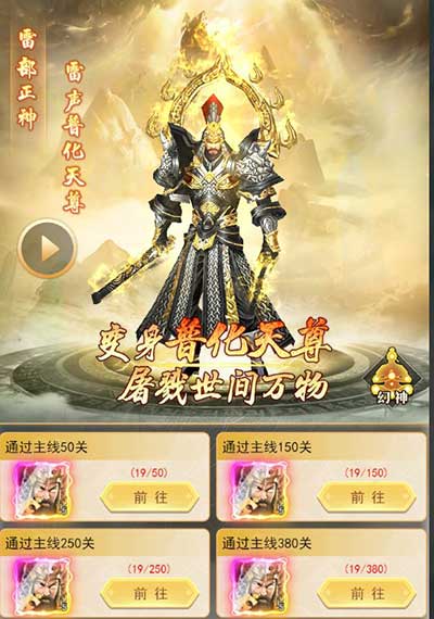 通过主线第四关开启幻神系统,玩家只需完成任务就可以获得一个幻神。玩家获取幻神后在能量条蓄满后可以在持续时间内变身为幻神,幻神拥有强大的战斗力。