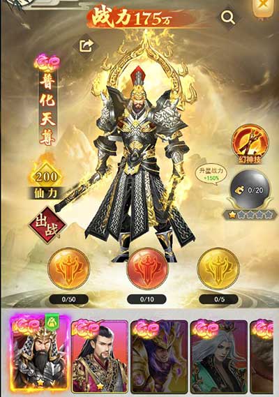 幻神消耗一定数量的碎片可以升星,升星后提升幻神的战斗力,幻神还可以通过吞服丹药,提升玩家战力。