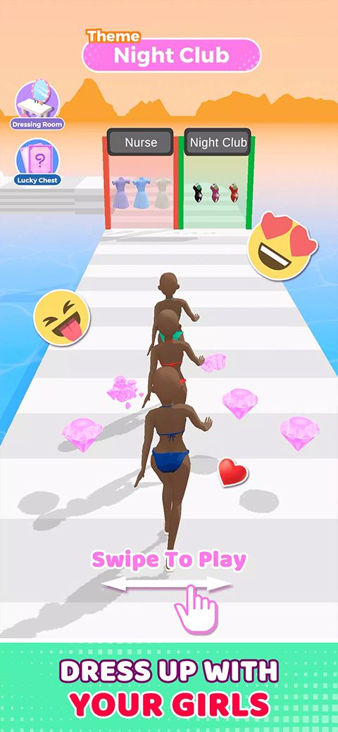 闺蜜谁最美游戏是一款类似高跟我最美玩法的休闲跑酷换装游戏,玩法模式非常简单,是以闯关为主的,在这款游戏中,玩家将操控你的小姐姐和小哥哥在赛道狂奔,根据游戏主题沿途的服装配饰进行收集,途中还要注意躲避障碍物,例如地上的香蕉皮,在超市里你还可以开撩超市老板,可以进行语言上的调侃,非常有趣。如果你对这款游戏感兴趣的话,那就快来控制你可爱的小姐姐们,不断前进以获得更多奖励,获得更多精美服饰,打扮你的闺蜜,让她们更可爱,更漂亮,搭配服装造型走上最后的T台吧。