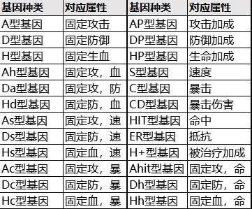 总的来说基因的种类分为:攻击、防御、辅助三大类。