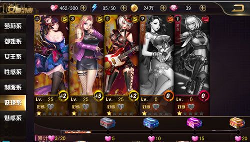 3、收藏:不同属性拆分成不同系列,满足累计好感度星数条件更可以解锁丰厚奖励