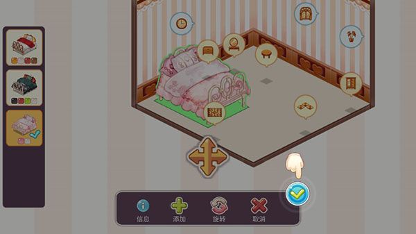 3、房间中的任何空闲区域都可以随意安置家具,手指点击位置摆放就可以成功。