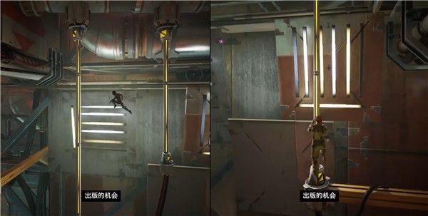 12、需要一个人进行机器交互把类似电池的东西拔出,电力风扇就会有个缺口,抓住时机从缺口处抓取对面绳索。