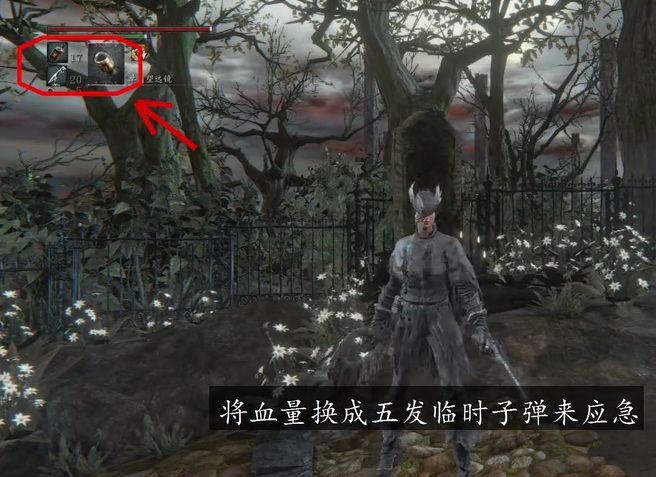 血瓶和子弹需手动补充,上限均为20个(血液中的血瓶实打实消耗,不会自动补给)。血瓶耗尽后可通过击杀小怪或商店购买获取,紧急情况下可按方向键“上”将血量转换为5发子弹(按手柄的方向键上键将血量换成五发临时子弹来应急)。