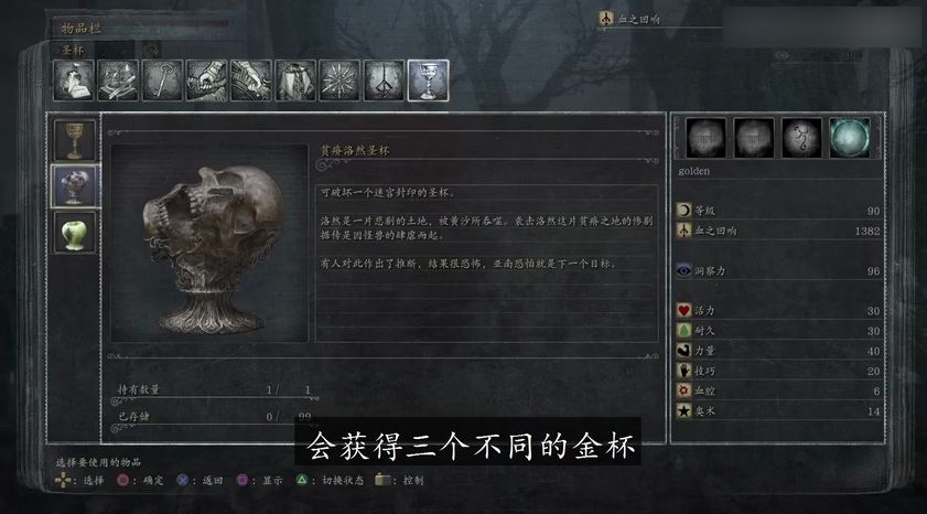 玩家被月亮所吸引,发誓守护这段梦,这是奖杯的原文,而选择了击败格曼,并且接受了古神,成为新的一名梦境看守者,这样便能永久停留在这个梦里,不断的猎杀。(开启了新的周目)