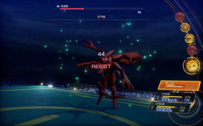 战斗最重要的一点便是属性克制,招式伤害会根据种族、属性、因子这几项要素进行乘算。例如种族方面,疫苗克病毒、病毒克数据、数据克疫苗,对应招式会在种族克制/被克制时翻倍/减半。种族方面其实也不止三种基础类型,还有像V仔兽EX这样的自由种(不受种族克制影响)、火神兽这样的可变种。属性(例 火地草电)和因子(例 虫 兽 魔)方面,则是根据各自的抗性、特殊效果进行计算,例如某个数码兽弱火、某项技能对某类敌人有特殊加成,则是在种族克制的基础上进一步乘算。除了特殊情况(技能效果、数码兽特性,可能会使伤害无效)下,我目前见到的招式的伤害倍率有0.3、0.5、1.0、1.5、2.0、3.0、4.5这几种,在我打出4.5倍伤害时的评价为Excellent(并且解锁了对应成就),应该是常规战斗中的理论最高倍数(种族和属性克制,并且使用对因子有特效的招式)。再结合上物理、魔法攻击与抗性的差异,同一场战斗使用不同数码兽的差异会非常大,逆属性大师也无计可施。但是从另一个角度而言,它非常鼓励你培养并使用多只数码兽,许多你喜欢的数码兽都有用武之地,许多时候都能形成六只数码兽 交替上场的局面。就我目前体验到的流程中,在与鲨鱼兽战斗时,剧情提供的数码兽队友正好有4.5倍克制的招式,可以适当缓解战斗压力,也可以作为初见敌方时猜测弱点的依据。