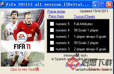 FIFA11全版本三项修改器是一款为游戏国际足球大联盟11制作的辅助修改工具,适合菜鸟玩家,让初学者也能体验到进球的乐趣,如果你的自己水平还是菜鸟级别,那就赶紧拿走吧,多练练就会成为高手的。