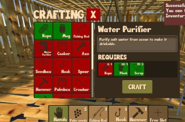 建造锤:用来扩展木筏,造成大船,具体作用后面会详细说明。合成:5木板,2废铁