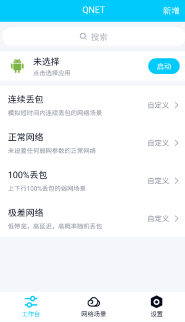5、在“工作台”页面,选择您想要进行测试的弱网模板,并点击“启动”按钮。