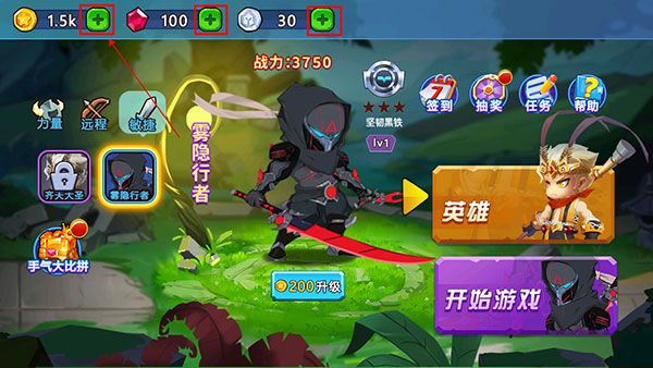 2、由于小编为大家带来的是乱斗小英雄,所以玩家们只需点击下图按钮即可无限制的获得货币资源;