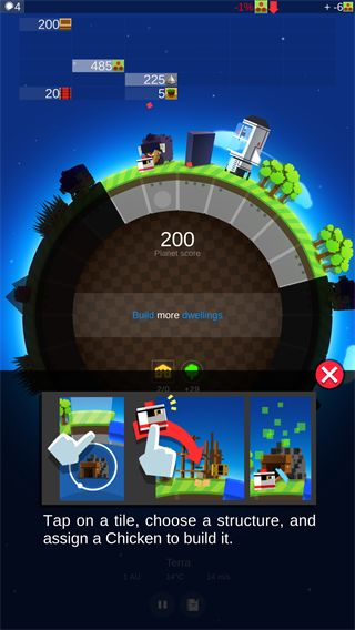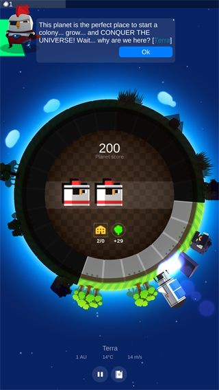 玩法其实和大多数的经营类游戏的玩法是相同的。需要你不断的扩张自己的领土,每一块领土的使用都要利用好。当然你并不是一个人,你的周边还会有一些邻居,你需要和这些邻居进行交易,并且相互沟通,不要发生战争,不要有太多的麻烦。而且努力的发展出一个品种多样的星球,让星球变得更加的出色。