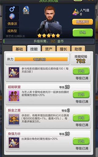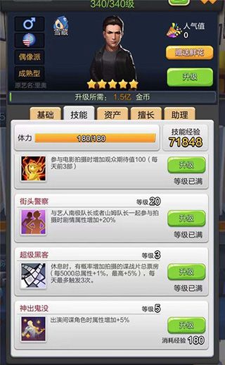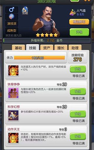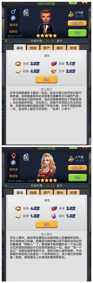 2、艺人系统:通过星探招募艺人,可在艺人教室对艺人进行培养,还能训练艺人技能,赠送艺人资产等。