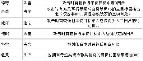 法宝装备和头饰装备部件可能出现的被动效果: