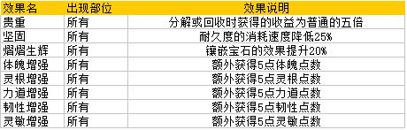 披甲装备、腰带装备、鞋子装备、项链装备部件可能出现的被动效果: