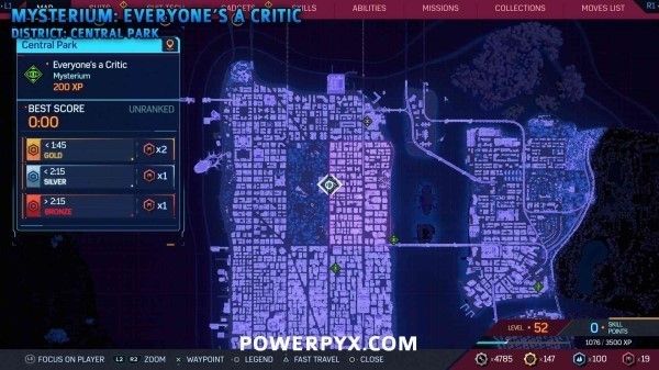 金牌思路:获得金牌评价需要在不被击中的情况下击败所有敌人。每当头上出现白色或红色的蜘蛛感应提示时表明即将被攻击。尤其需要注意挑战后期出现的高速行驶的汽车,会提前出现绿色的光的提示。按△快速接近敌人以缩短移动消耗的时间。解锁并完全升级迈尔斯的所有技能后,尽量使用那些群攻技能也能大幅缩短战斗时间。除此之外,开启挑战前建议在设置中将难度调整为最低,这样会使战斗挑战更容易。