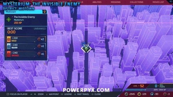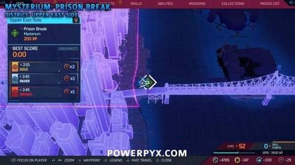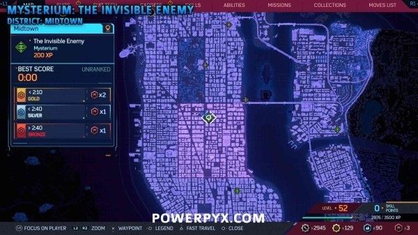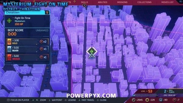金牌思路:获得金牌评价需要在不被击中的情况下击败所有敌人。每当头上出现白色或红色的蜘蛛感应提示时表明即将被攻击。按△快速接近敌人以缩短移动消耗的时间。解锁并完全升级迈尔斯的所有技能后,尽量使用那些群攻技能也能大幅缩短战斗时间。除此之外,开启挑战前建议在设置中将难度调整为最低,这样会使战斗挑战更容易。