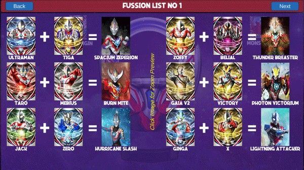 玩家点击右上角第二张,即可查看奥特曼融合图鉴。