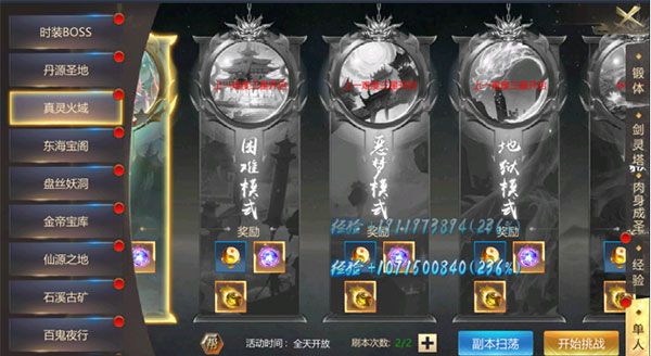 4、法宝,灵玉和披风的精华和丹药,都可以在单人副本里产出,单人副本还有额外的次数可购买哦!当然,一些运营活动也有提供到这些给玩家哦!