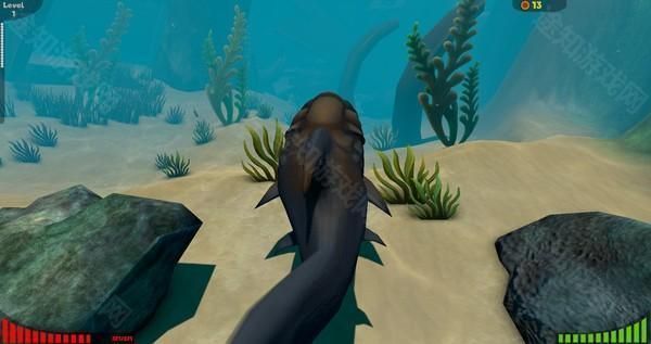 4、可以找一处地方蛰伏起来等待鱼类经过点击加速猛冲上去即可吃掉