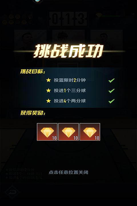 1、在我们进入到游戏的主界面之后就能发现滚屏页的投篮训练啦,每日限定次数投篮,完成训练还有钻石奖励哦。