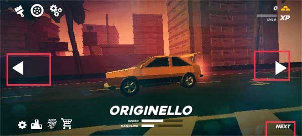 1、游戏开局的第一步就是选择自己喜欢的车进入赛道,通过左右按钮选择好车辆之后点击右下角的Next。