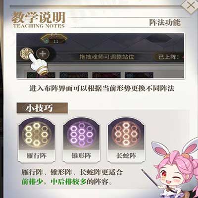 进入布阵界面可根据当前形势更换不同阵法,雁行阵、锥形阵、长蛇阵更适合前排少,中后排较多的阵容。