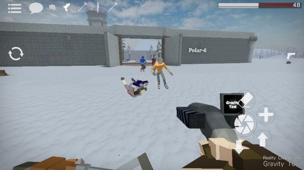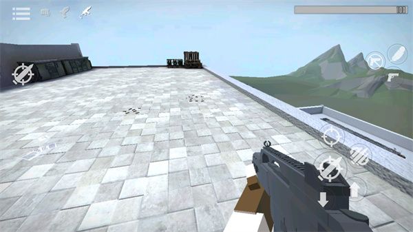 1、打开g沙盒仇恨最新版,想要拿枪就必须先找到一把枪,找到枪后需要将准心放到枪上,这时屏幕左边会出现一个手指按钮,按住手指按钮即可拾取;