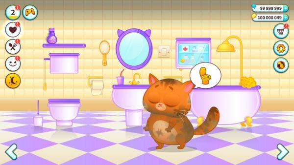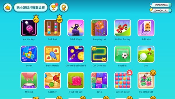 3、有30多个有趣的小游戏可以为你提供食物和金币,你可以用这些金币为你的虚拟宠物猫买东西。Catcher, Cat Connect, Find the Cat, 2048, Paint the Cat, Jump, Pop Balloons, Cheese Builder, Fish Ninja, Cat Sings, Nightmare, Jumping Cat, Diver, Stick Ninja, 等。