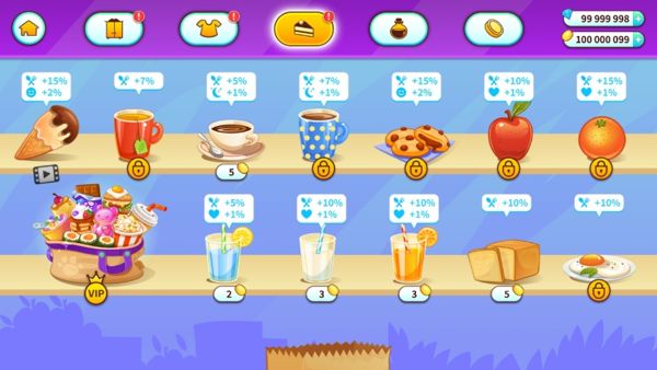5、打开冰箱,点击上面的蛋糕图标,就可以进行食材的选购;