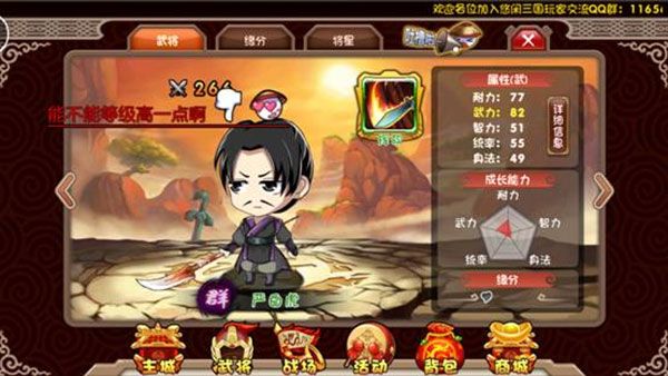 3、【武将系统】武将系统,招募武将需要花费一定元宝。武将信息可以查看武将的详细属性,上阵武将可以穿上或者更换装备。