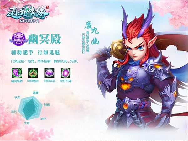 特色技能:封魔咒、天罗地网、影缚术、乾坤挪移