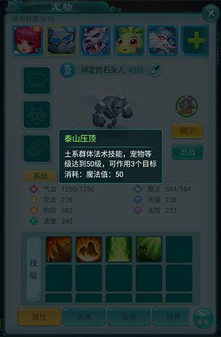 你在升级的过程中还会得到一颗石头人的蛋,里面有一个变异的石头人,也同样很适合用。这很有可能是你得到的第一只变异宠,并且它还是群法宠,一次攻击三个敌人,可以大大提升你团队的输出效率。