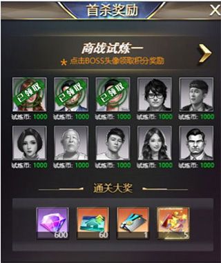 2、每章商战试炼,玩家需要击败多个BOSS才能通关,击败每个BOSS均可获得试炼币,首次击败会有额外奖励,全部击败后通关一章试炼,更可获得钻石、人才卡等珍稀奖励,同时会自动解锁下一关卡。试炼币可用来兑换奖励道具。