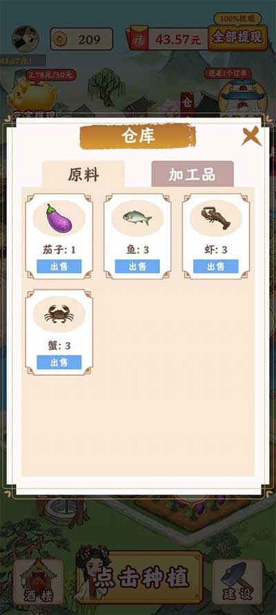 1、打开江南小镇游戏,点击菜地,开始种植小麦