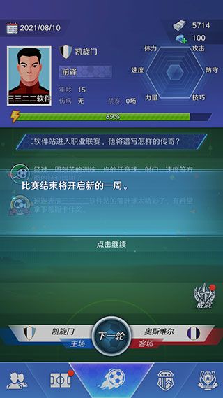 6、游戏以周为单位进行,每周的比赛结束后,玩家需要手动开启下一周的日程安排。