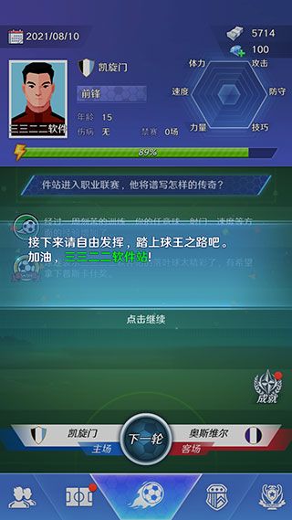 5、获得的经验可以用来提升球员的各项能力,点击能力后的加号即可,分配完毕后点击下一步即可返回主界面。