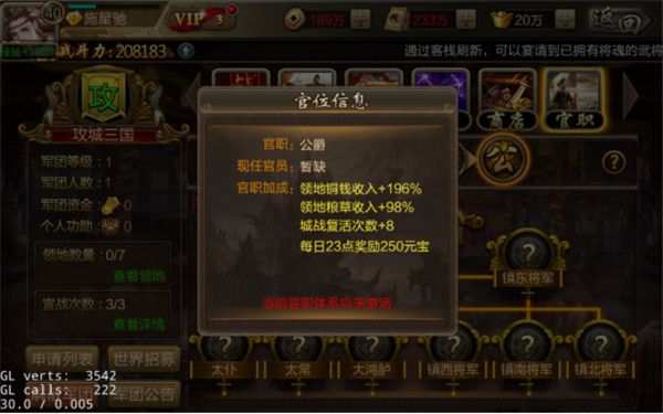 军团占领都城之后即可激活对应体系的官职,担任官员虽不能直接获取铜钱,但官员会提升大量封地铜钱产出量