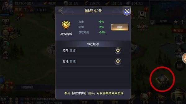 注意:没加入军团的玩家只能干瞪眼看别人打国战,是没办法自己攻城的