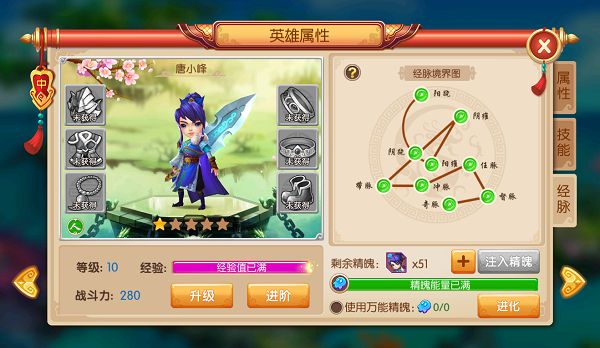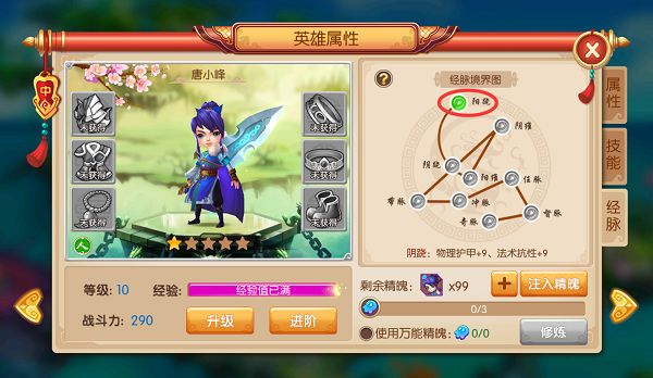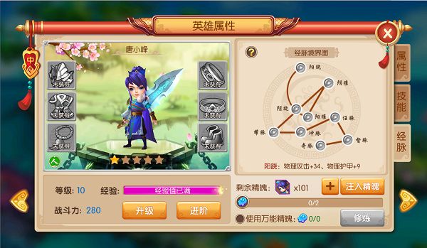 在我们将所有的经脉都打通后,就可以进化英雄啦!