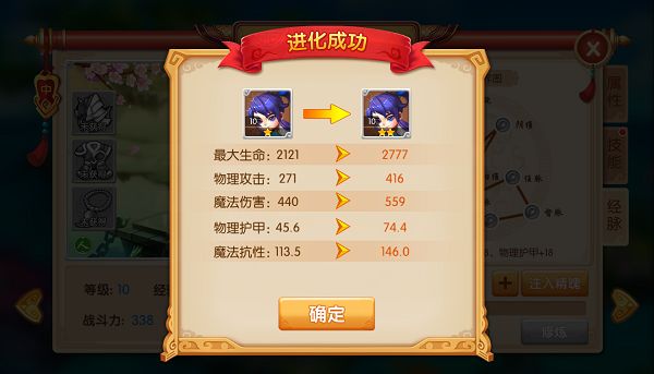 选择【进化】按键,我们就可以将英雄成功的提升星级了。