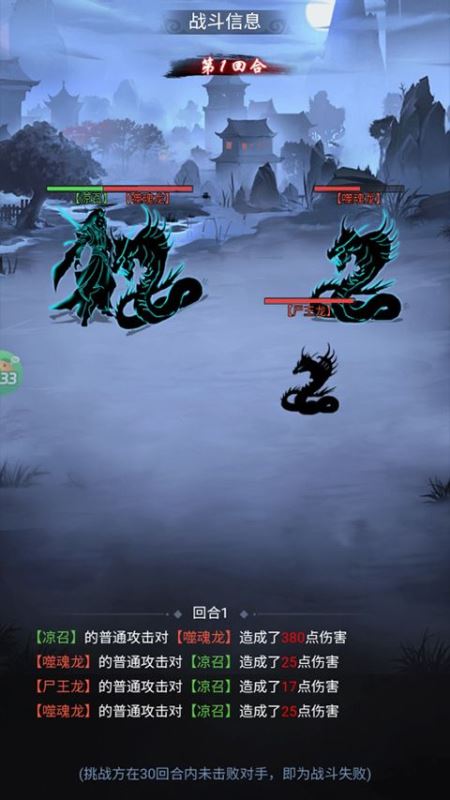 4、完成剧情挑战任务,挑战方在30回合内未击败对手,即为战斗失败