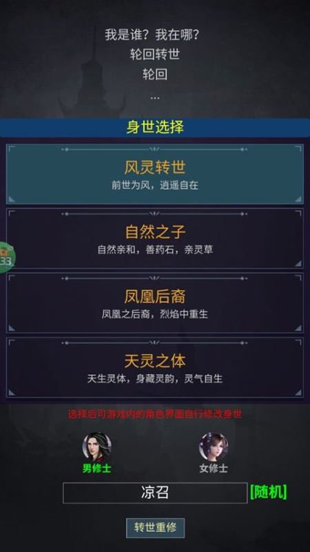 (ps:选择后可游戏内的角色 界面自行修改身世)