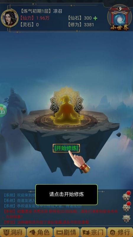 2、这里灵气浓郁,点击开始修炼,修复受损的神魂